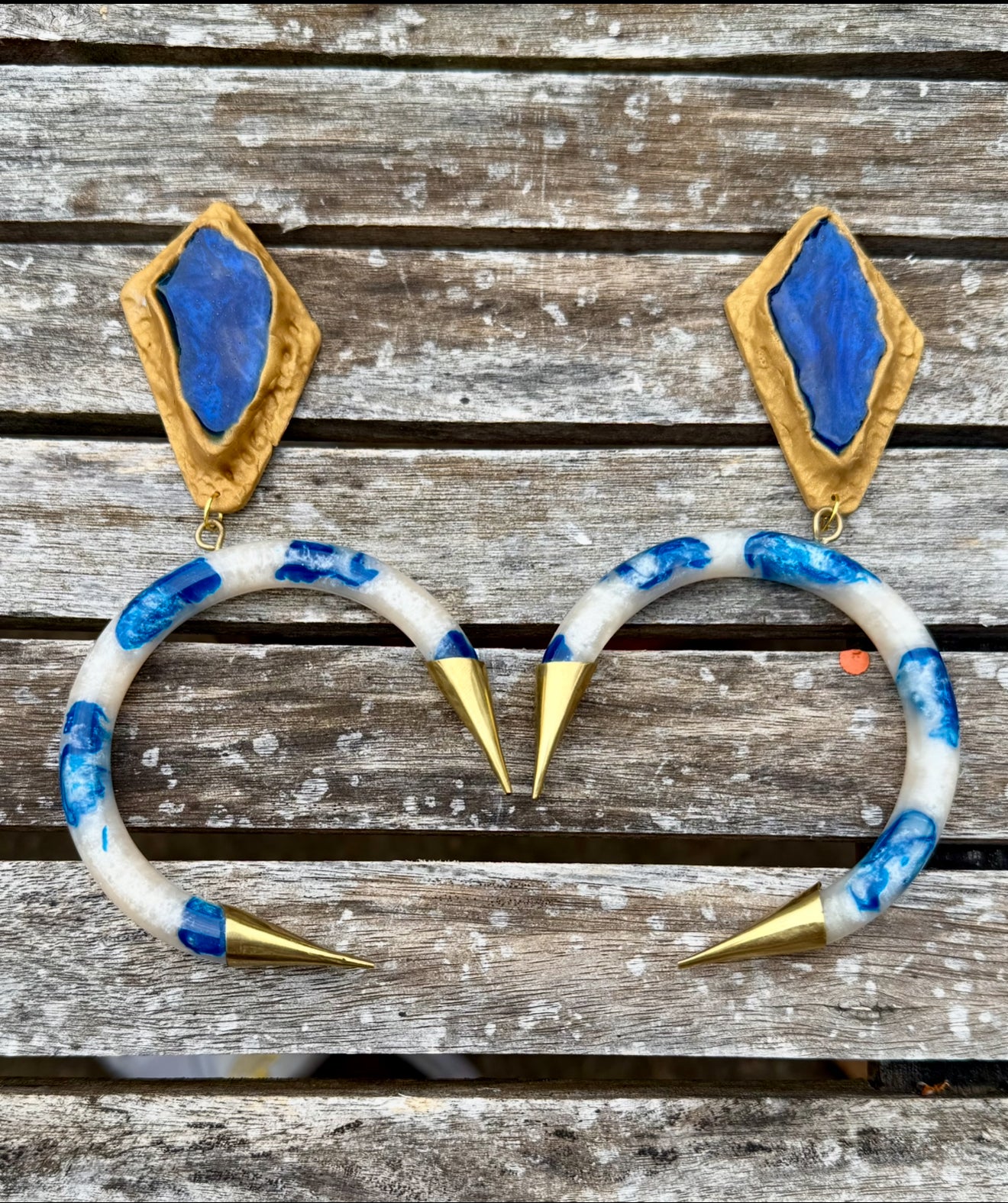 blue/ white/ gold earrings