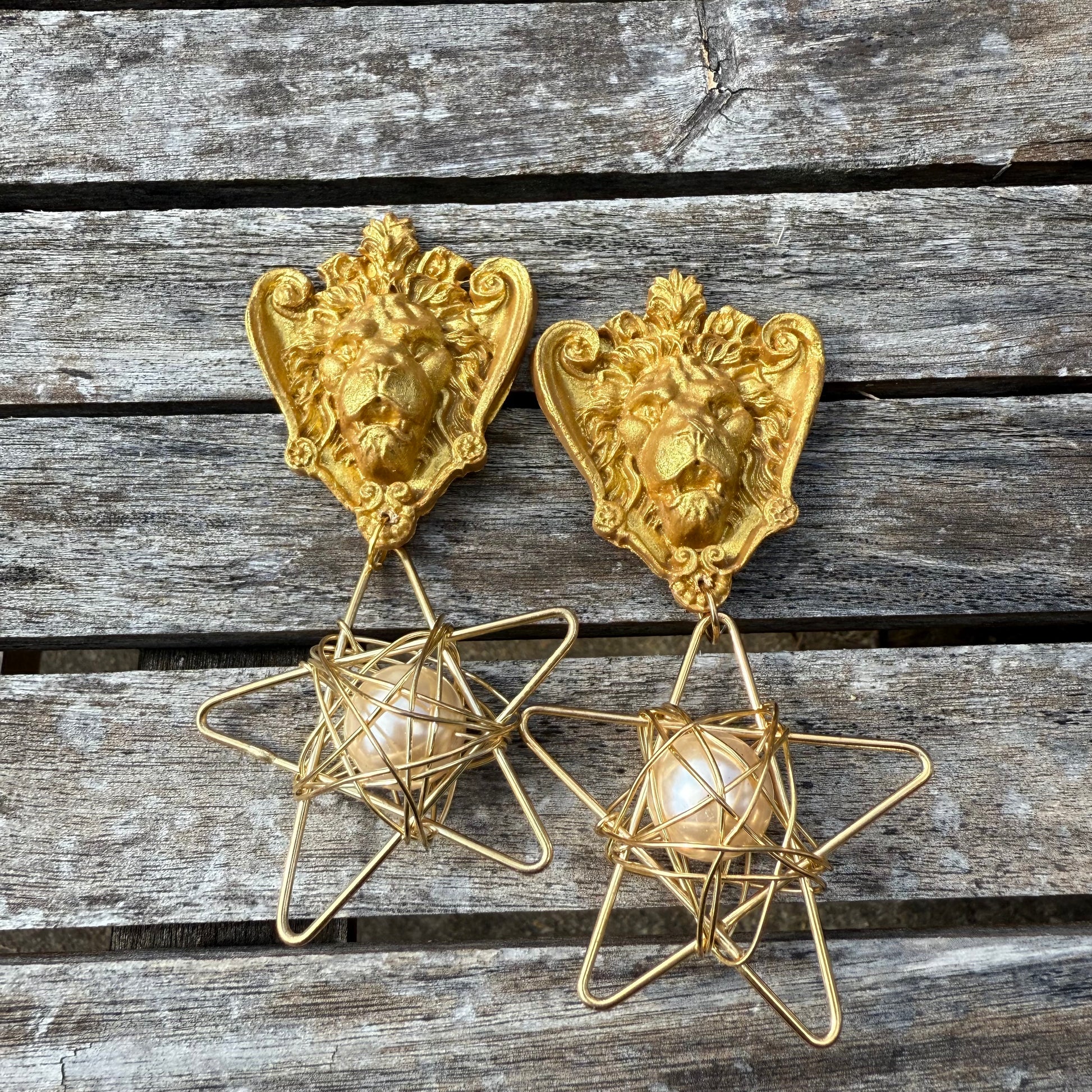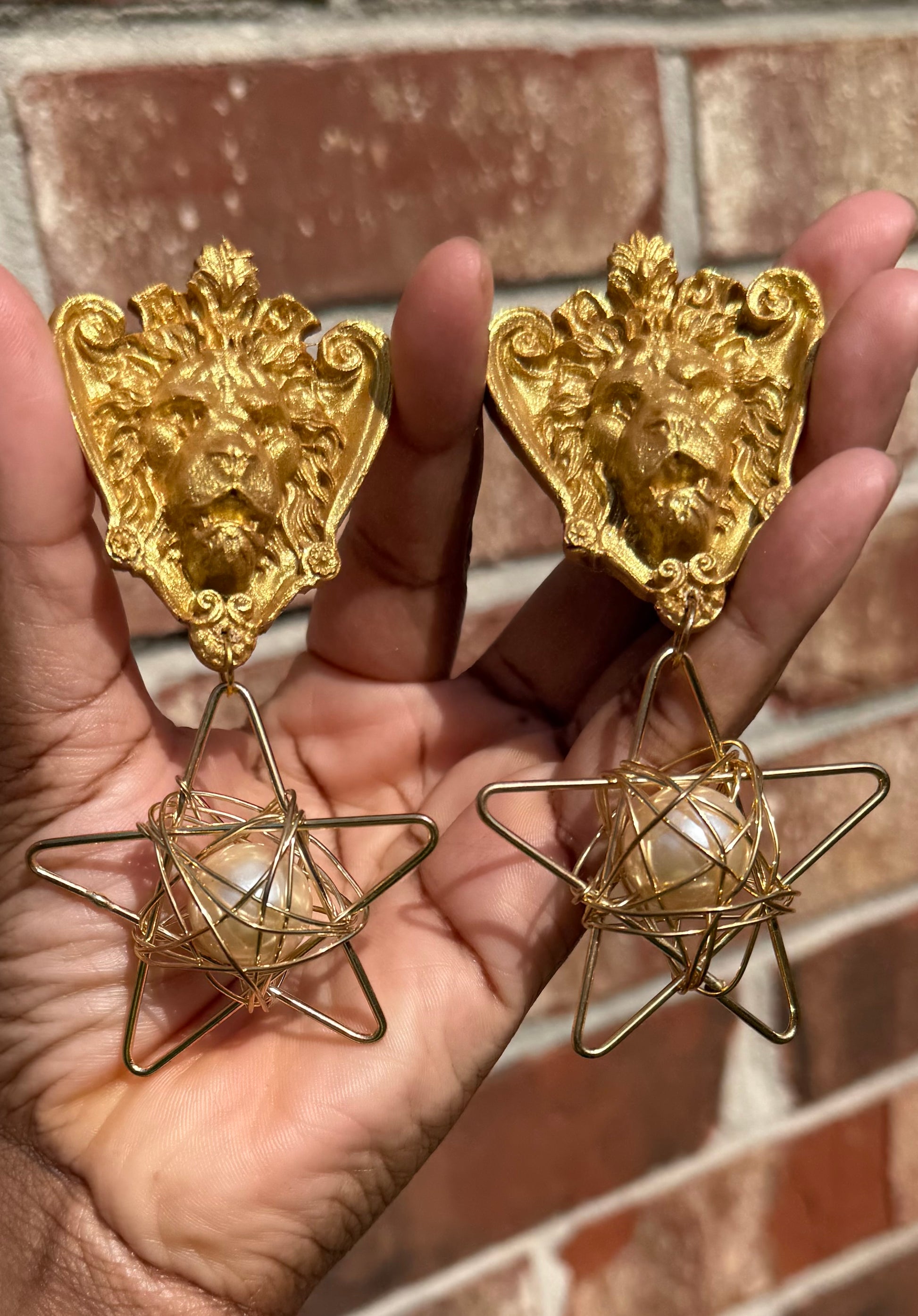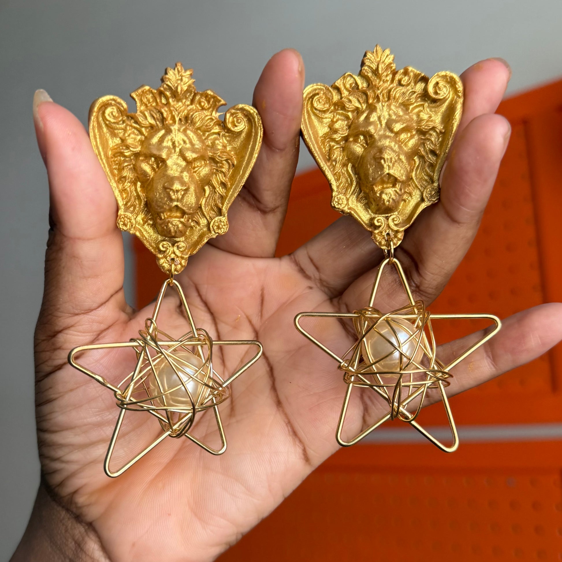 These Big Lion earrings reminds you of royalty. Courage, Bravery, Protector, Golden Luxury vibes.
